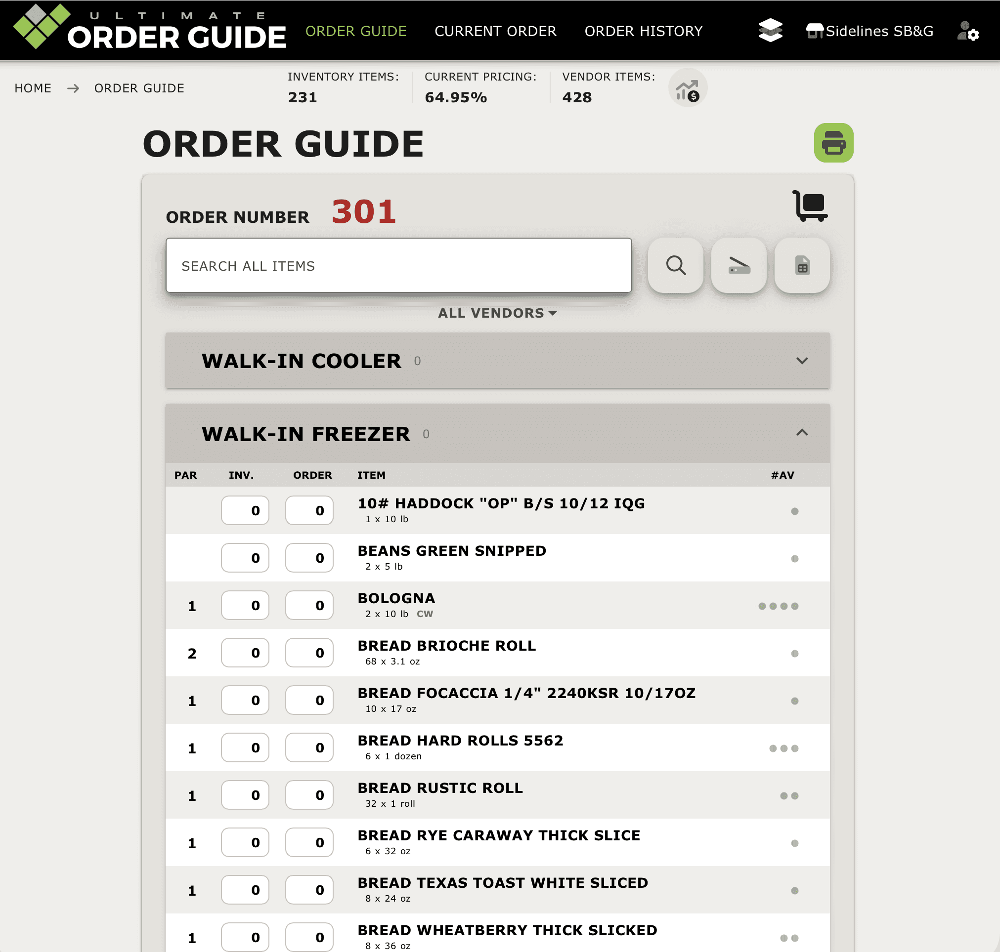 Ultimate Order Guide allows your distributor representatives to actively participate in the assignment of their items to your Order Guide inventory list. This leads to a greater number of item listings allowing them to grow their business as they compete for yours.